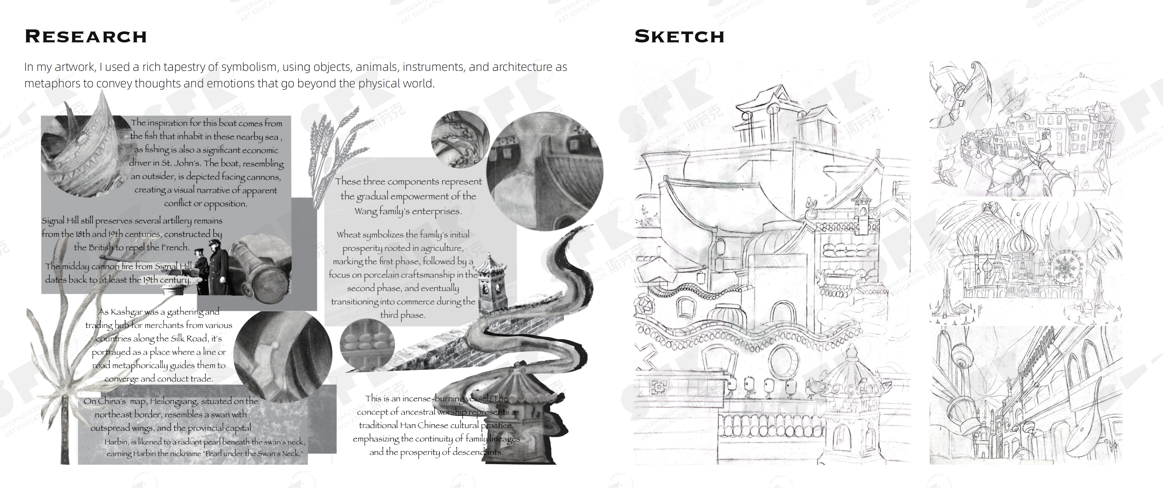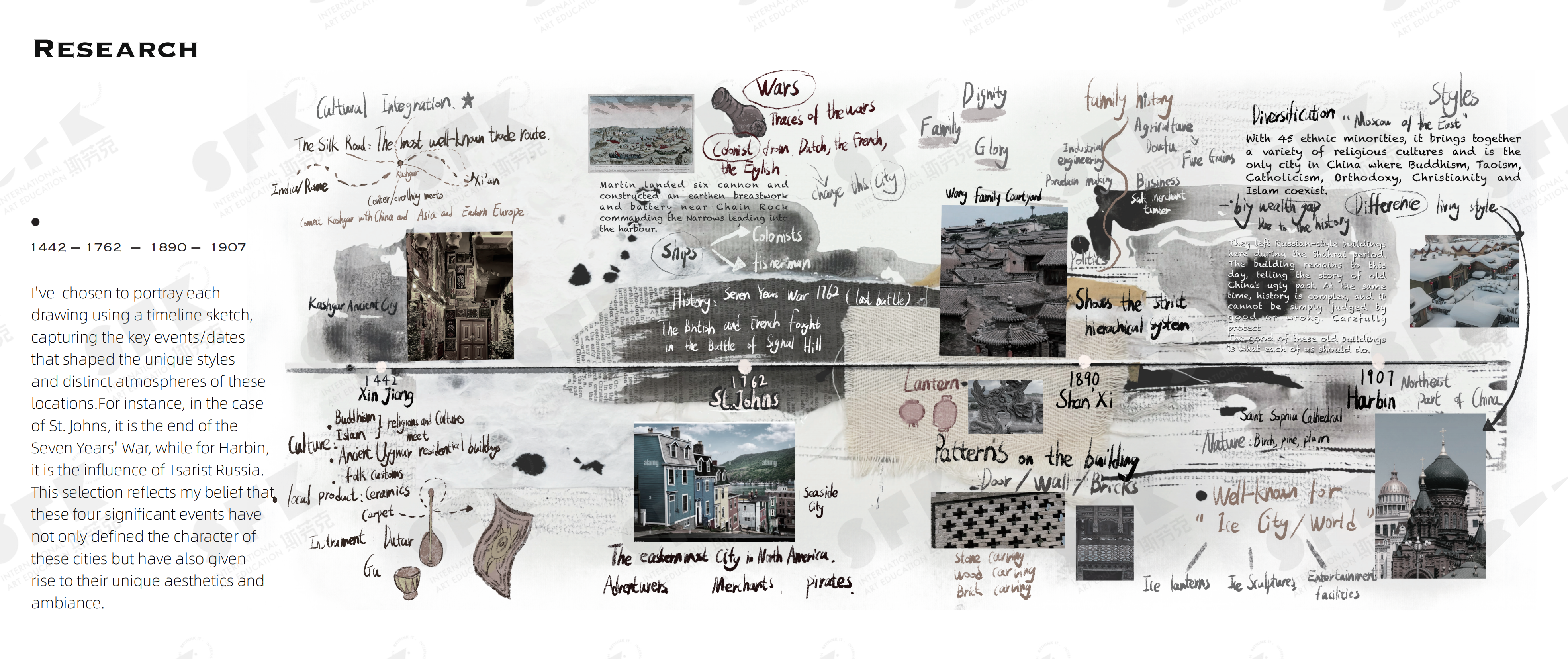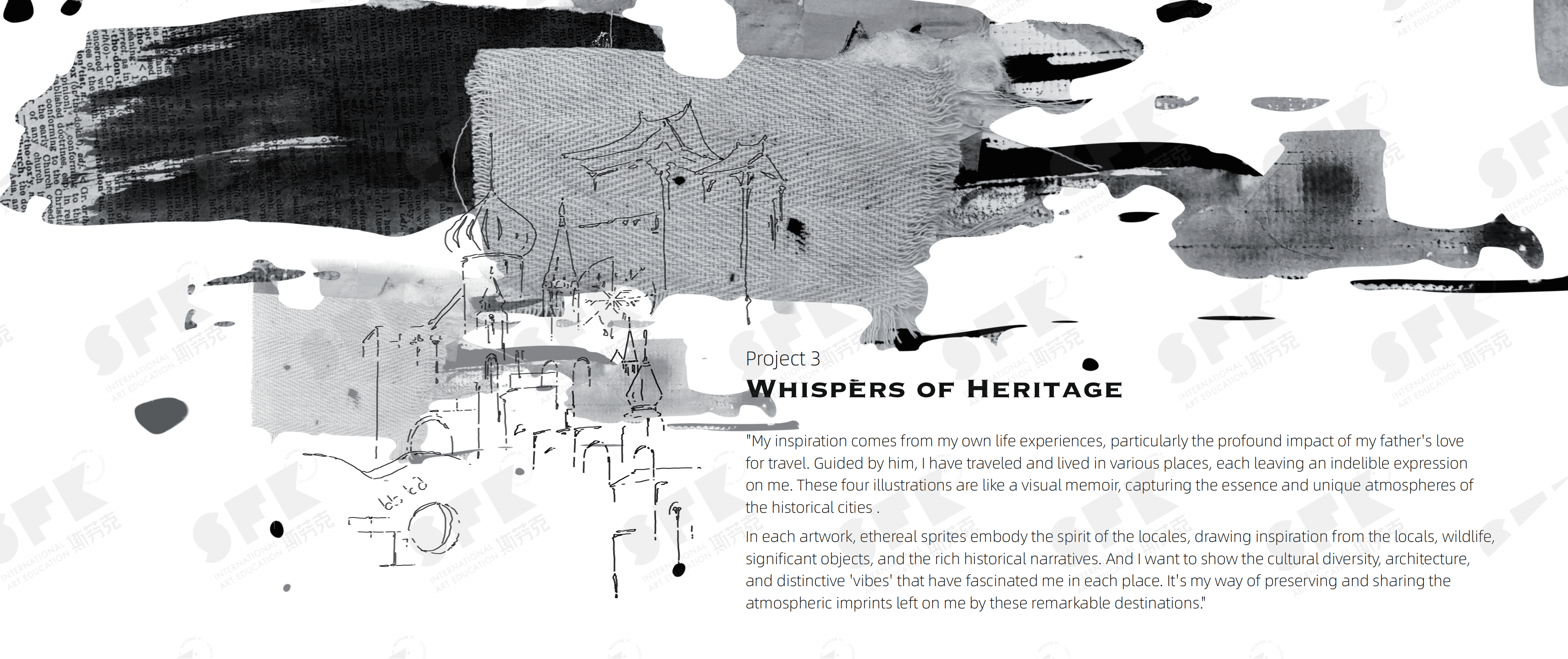 "My inspiration comes from my own life experiences, particularly the profound impact of my father's lovefor travel. Guided by him, l have traveled and lived in various places, each leaving an indelible expressionon me. These four illustrations are lilke a visual memoir, capturing the essence and unique atmospheres othe historical cities .in each artwork, ethereal sprites embody the spirit of the locales, drawing inspiration from the locals, wildlife,significant objects, and the rich historical narratives. And l want to show the cultural diversity, architecture,and distinctive 'yibes' that have fascinated me in each, place, lt's my way of preserying and sharina theatmospheric imprints left on me by these remarkable destinations.