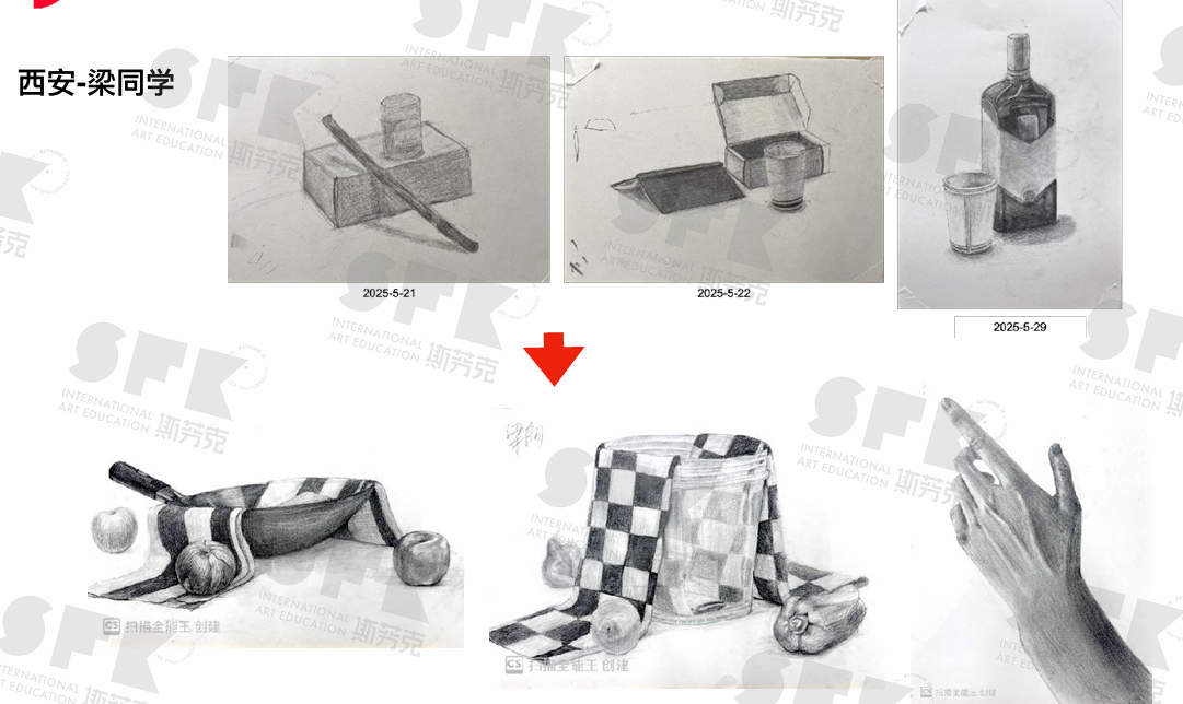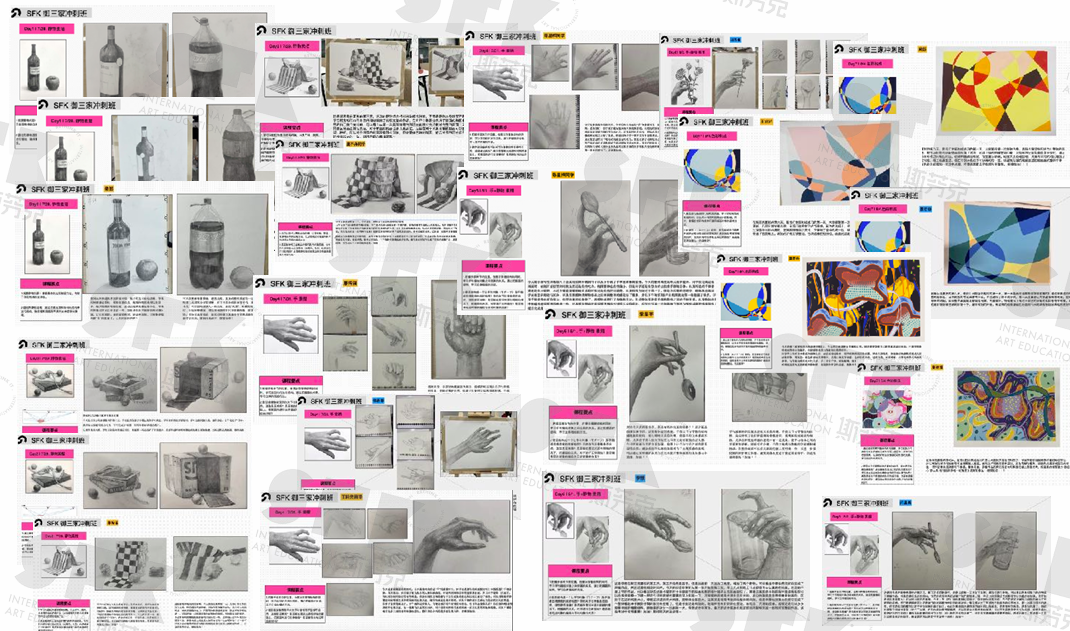 收获20+⻚的素描绘画作品和10+⾊彩构成绘画作品