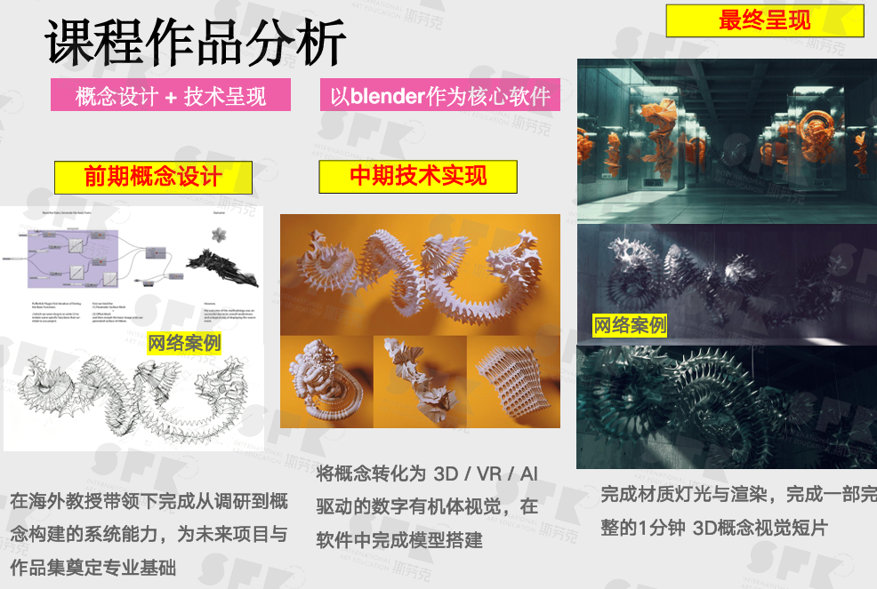 整体课程不仅仅掌握将抽象概念转化为视觉作品的设计能力,还能培养将技术与哲学思考结合的深度创作能力