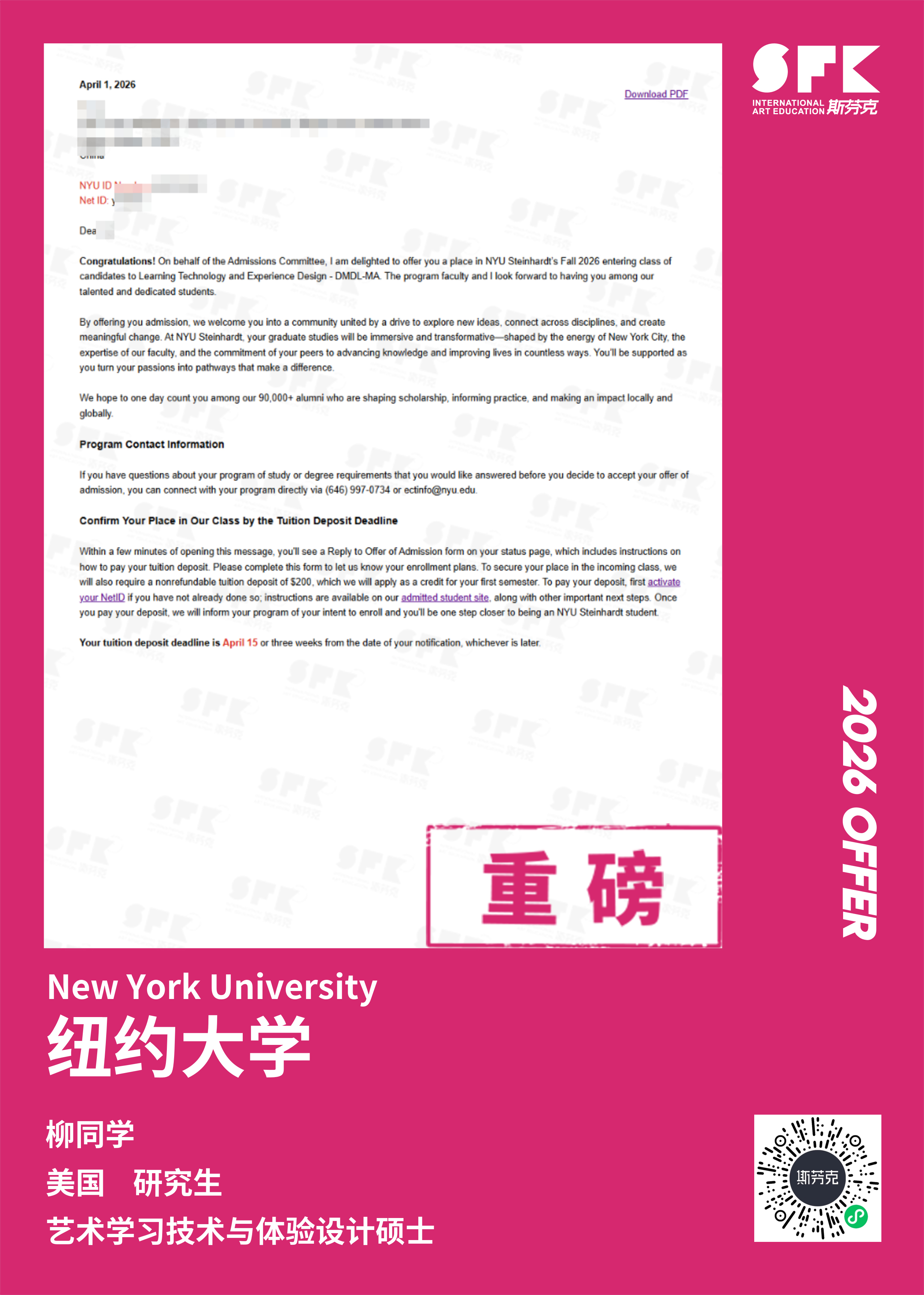 根据校方最新的通告,从2024学期开始,每一位被录取的纽约校区的学生,无论是本土还是国际生,只要家庭总收入少于或等于10万美元且拥有典型资产(与家庭收入水平相称的资产),就可以免交学费。