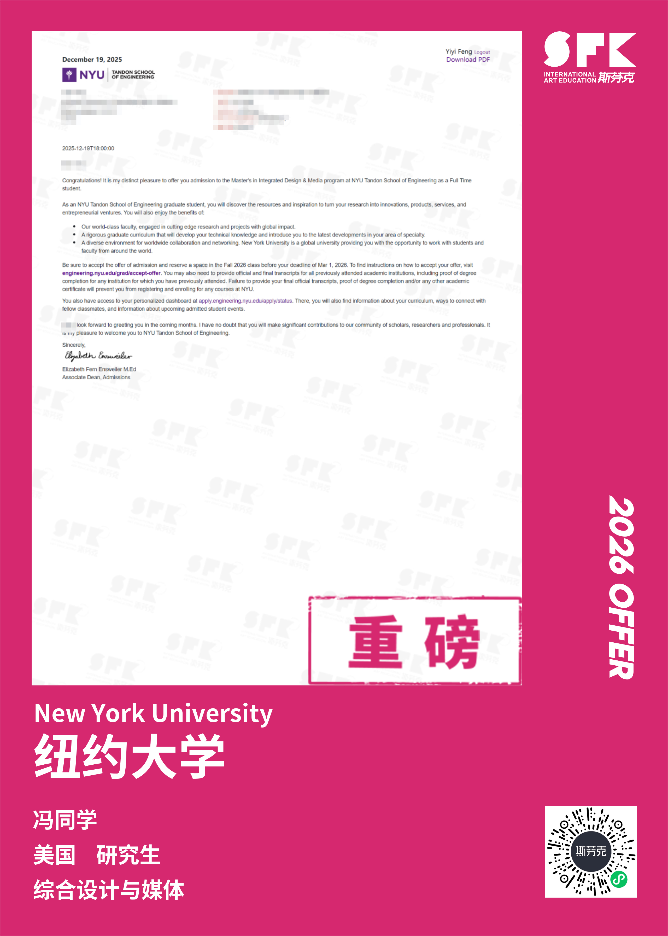 首先,电影专业申请不需要有过硬的技术,更需要的是同学们会表达自己,突出自己的个人风格,要对自己有比较清楚的认知,像影片中的配色,表现方式,这些都非常能突出个人的特点。