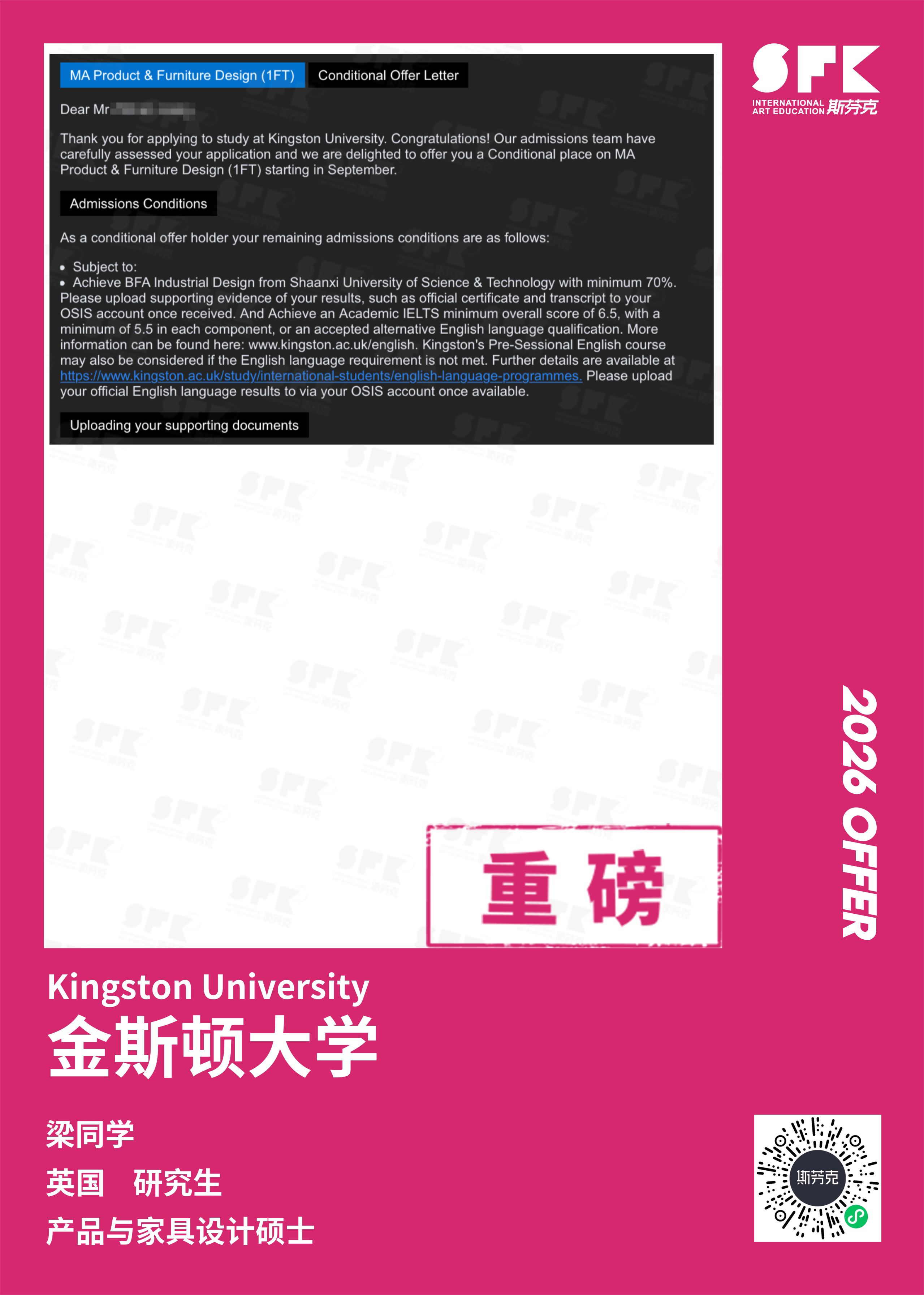 曾在英国参加RSAStudentDesignAwards,并是唯一一个获奖的华人。