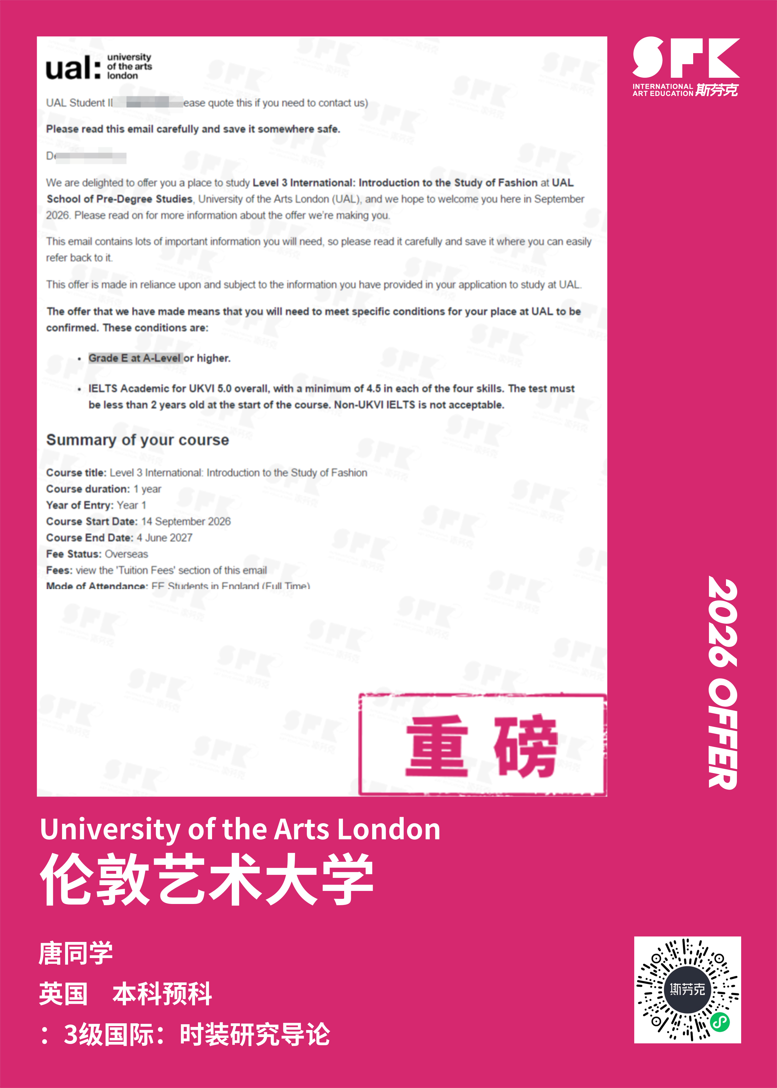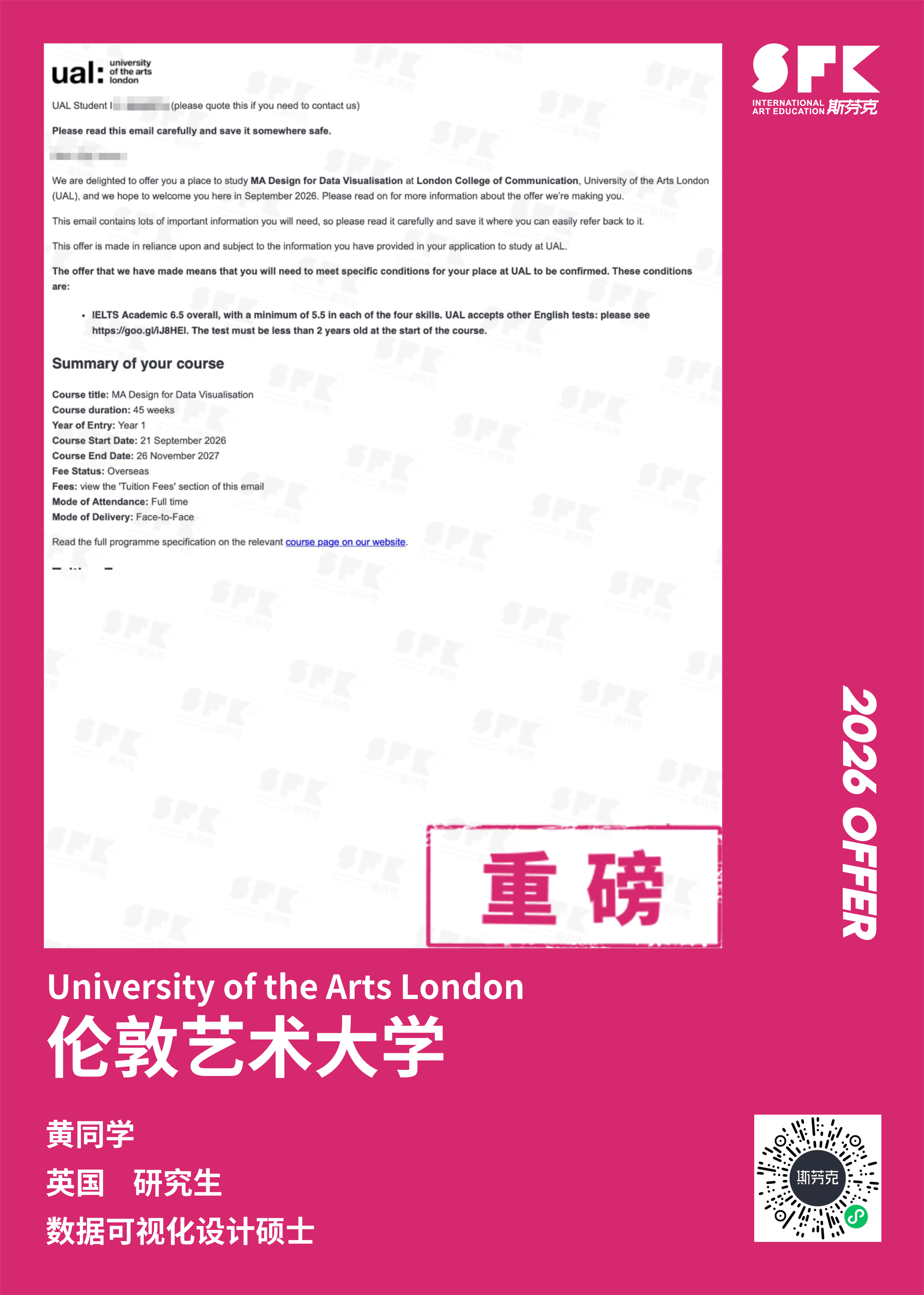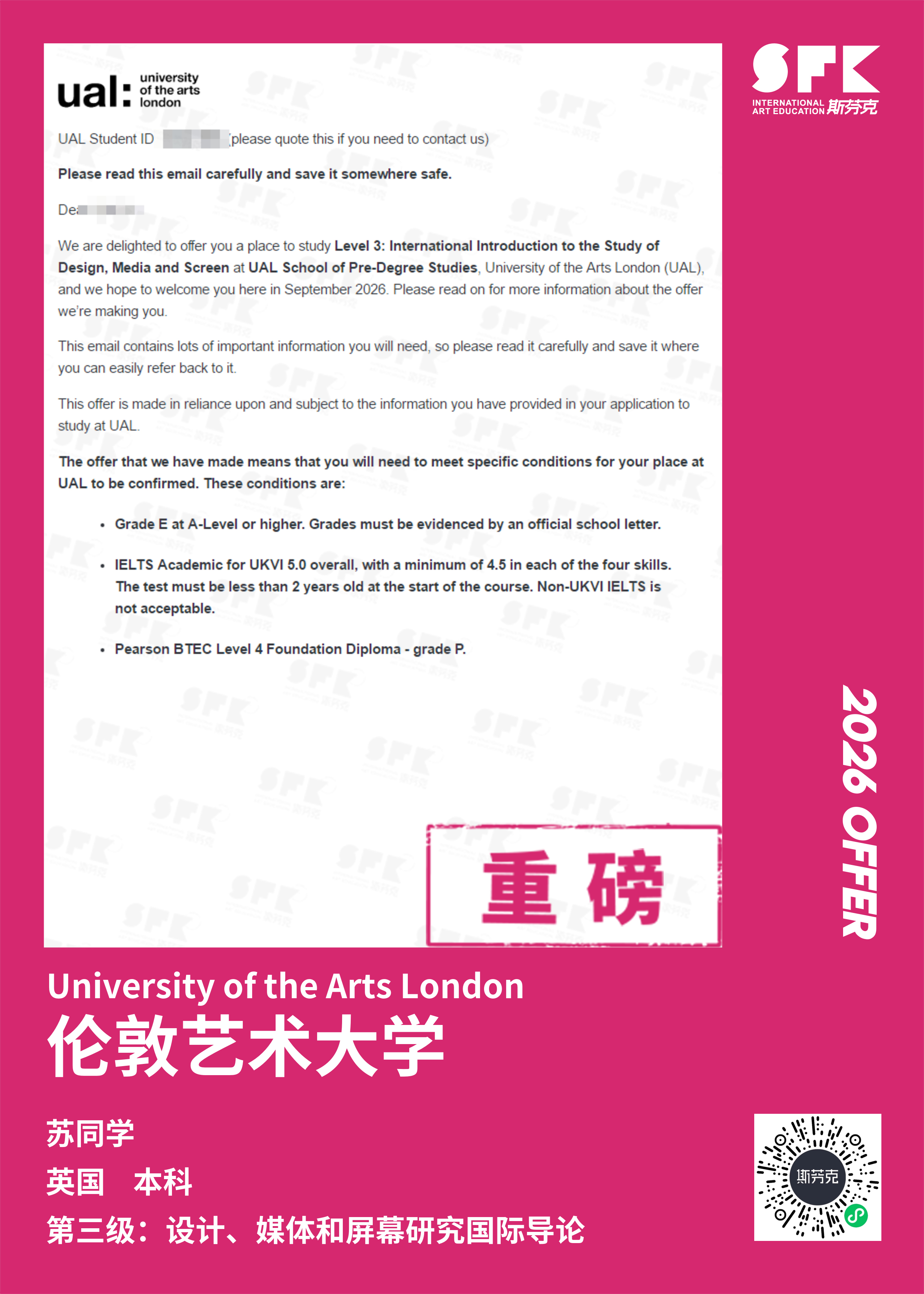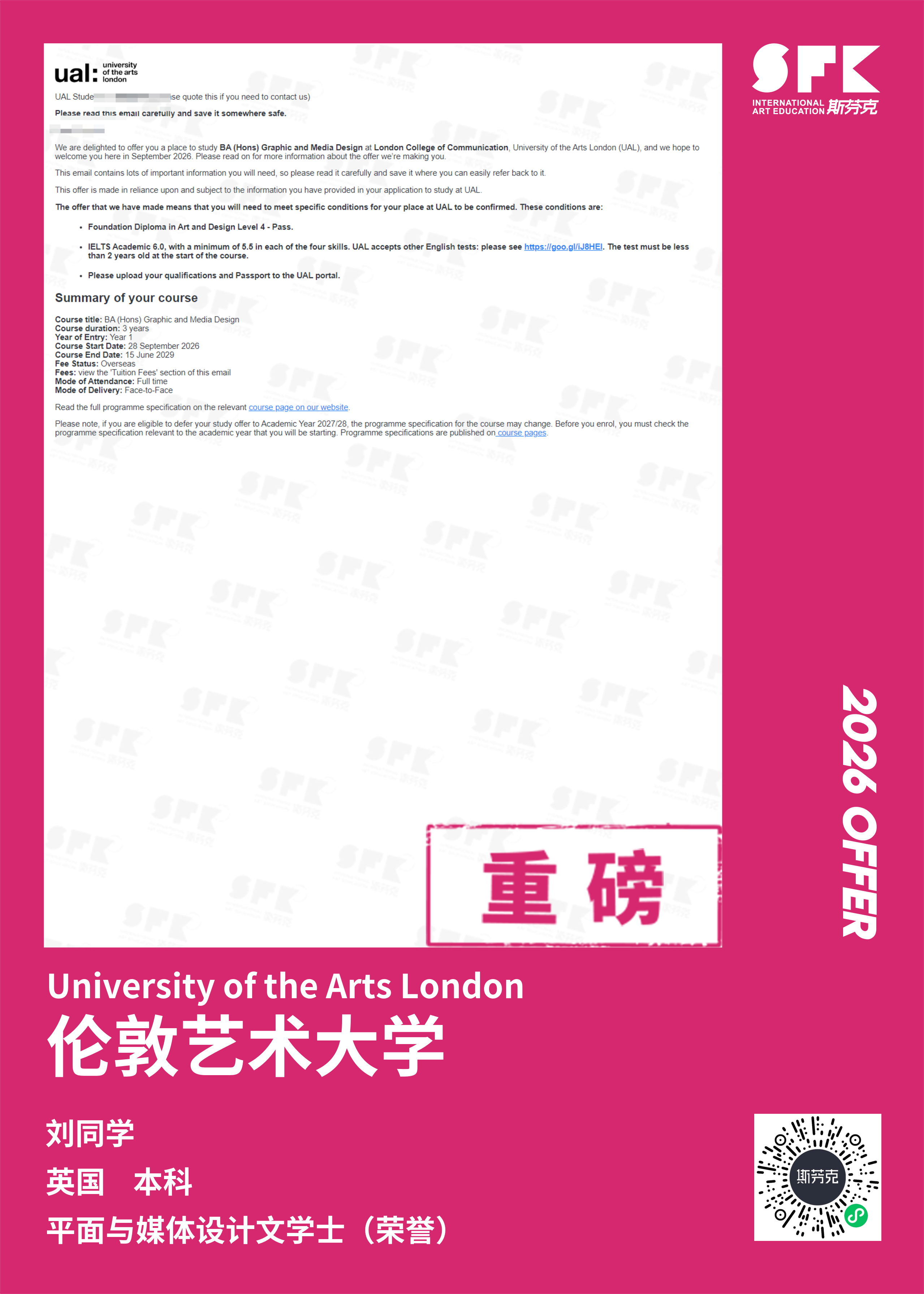伦敦传媒学院(London College of Communication 简称LCC)是世界创新传媒教育领域的先驱,一直站在设计新思维、媒体和荧幕创新的尖峰。由于学院和伦敦的许多出版传播机构和世界知名的零售公司有着紧密的联系,学生们除了完成课堂学习,还能通过在企业的实习增加实战经验,帮助学生发展将来工作所需的技能。