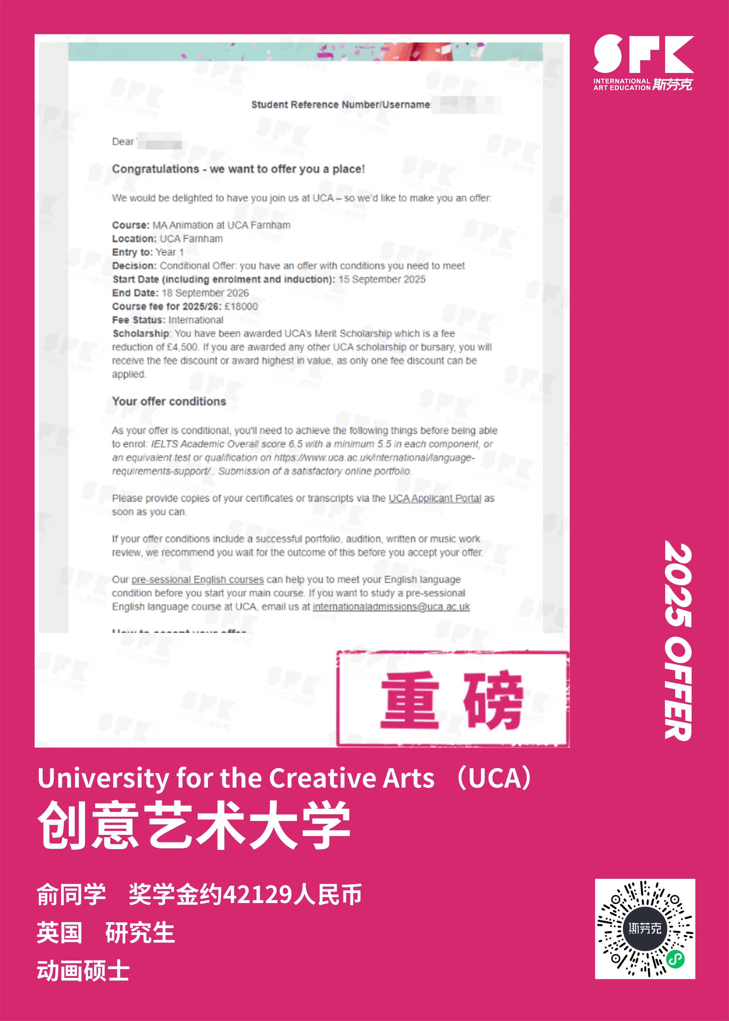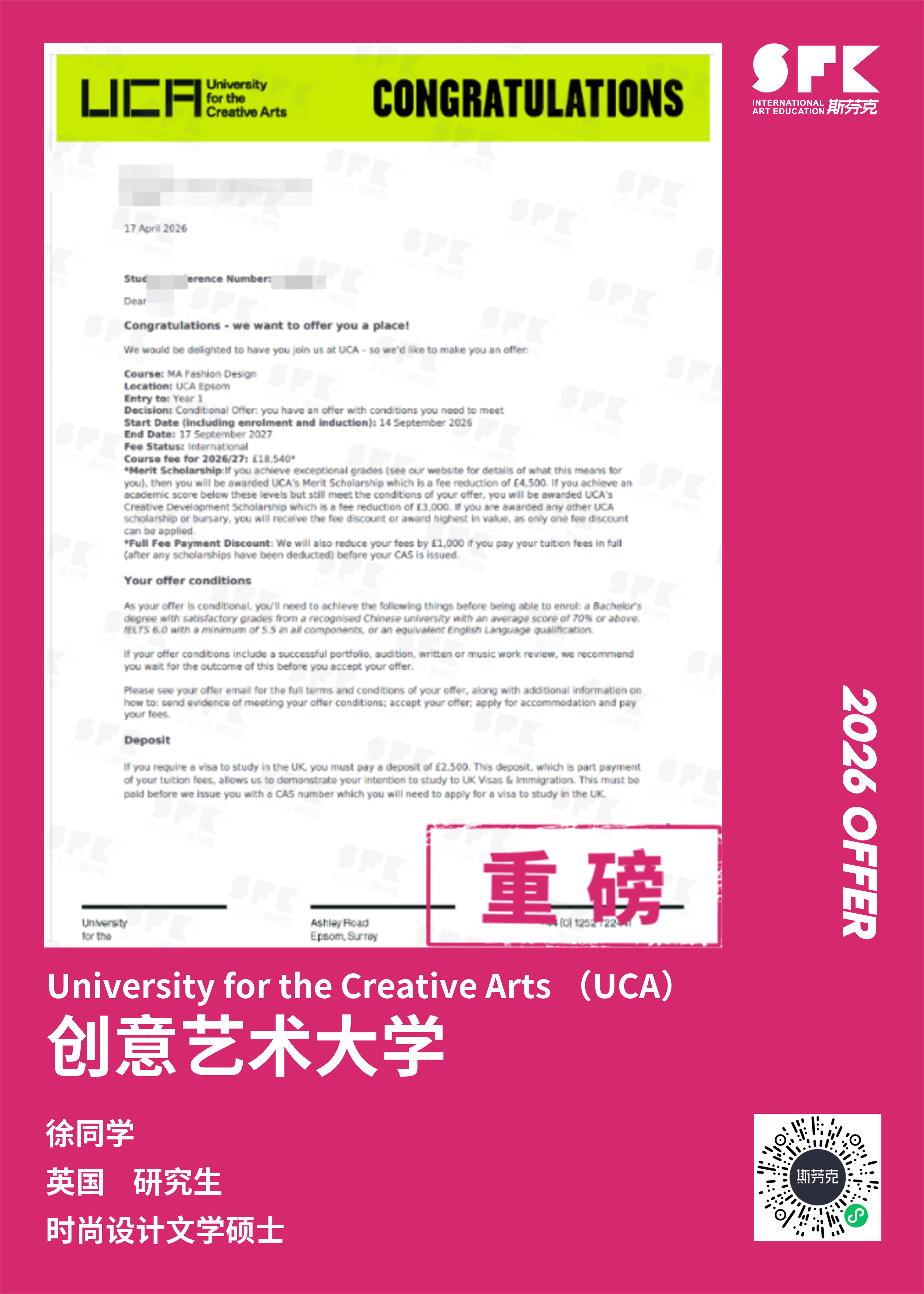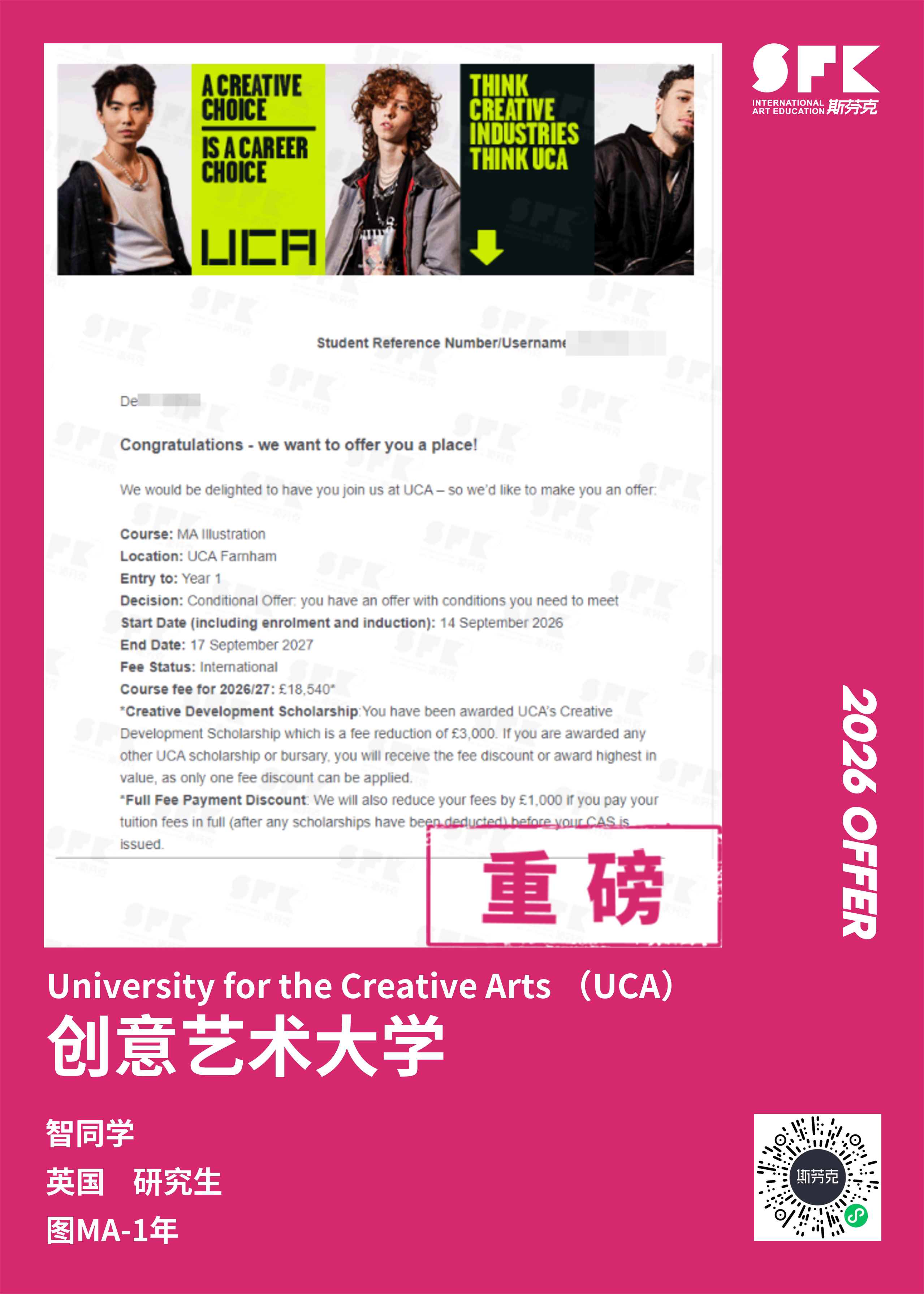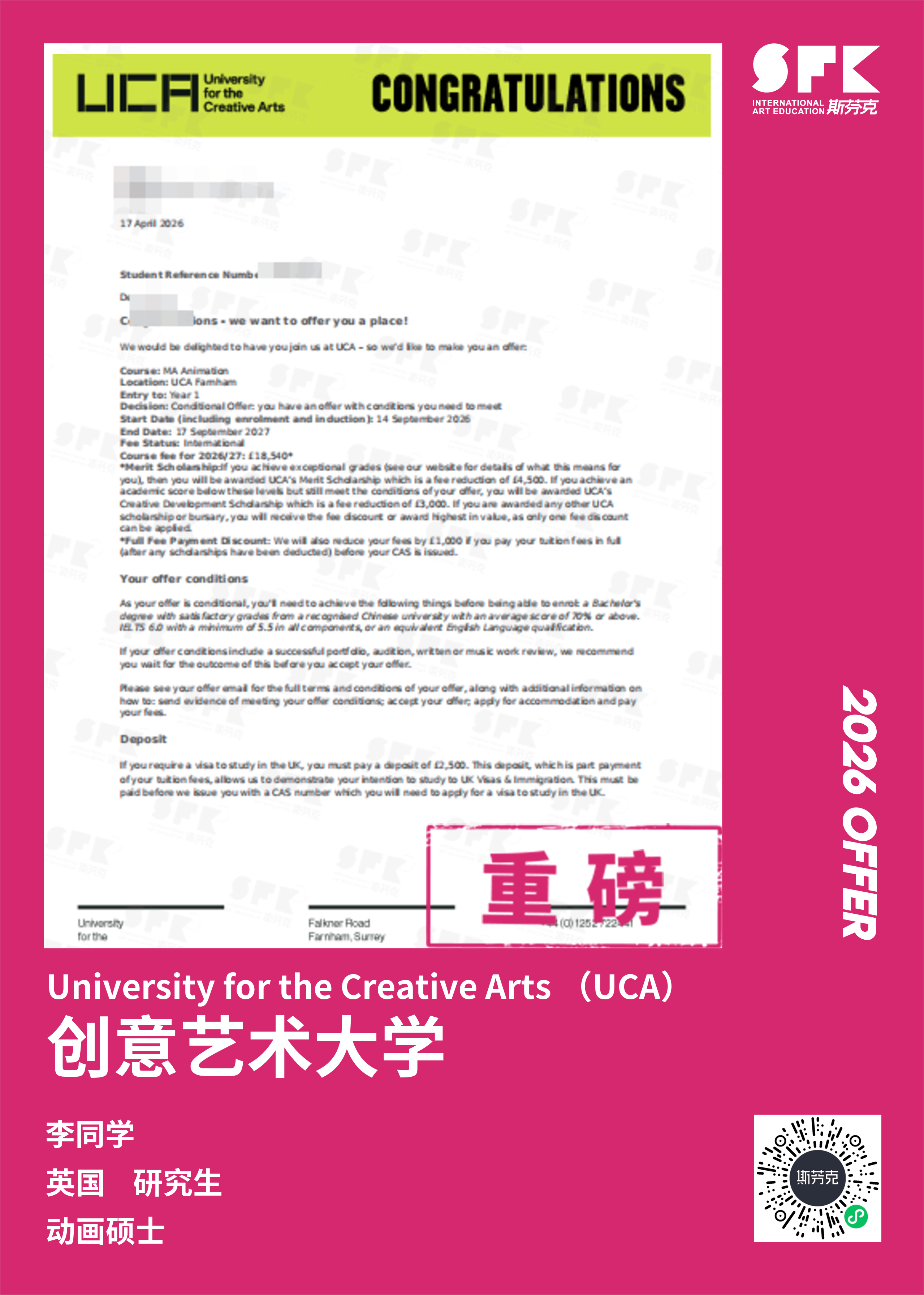 UCA 的就业率高达96.9%,是英国就业率最高的创意艺术类大学,一直将就业作为教学的目的。从课程设置,师资配置,业内资源到专门的就业指导中心提供专业的就业指导,UCA 给予学生全方位的就业支持。