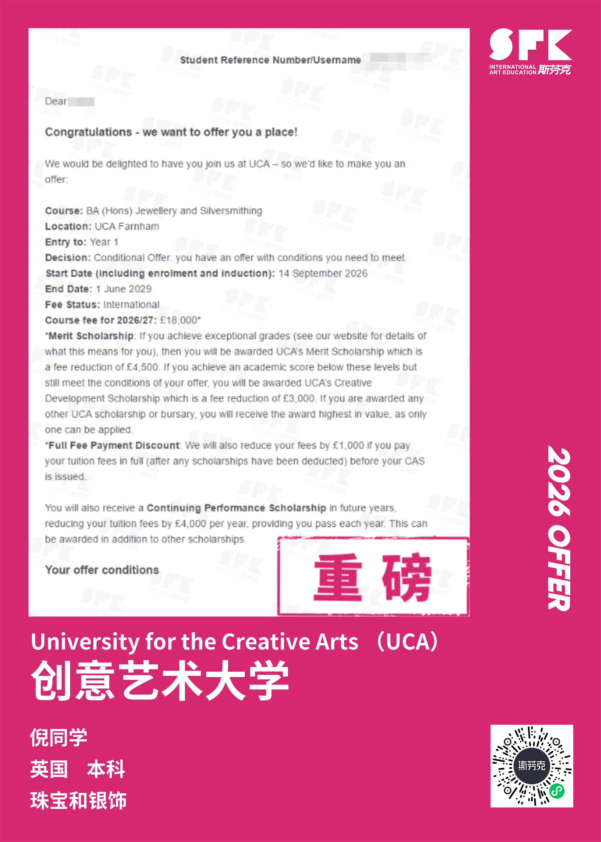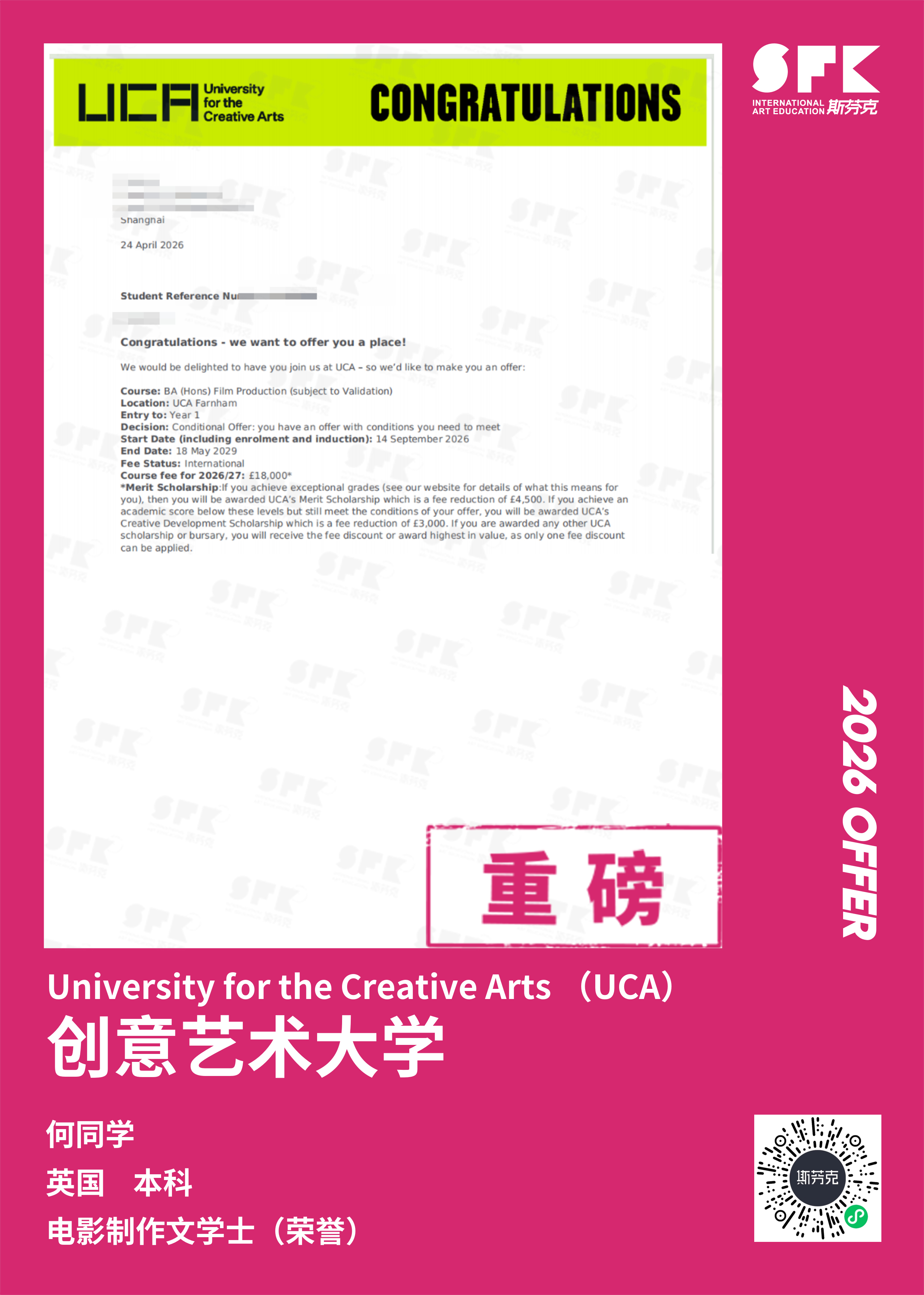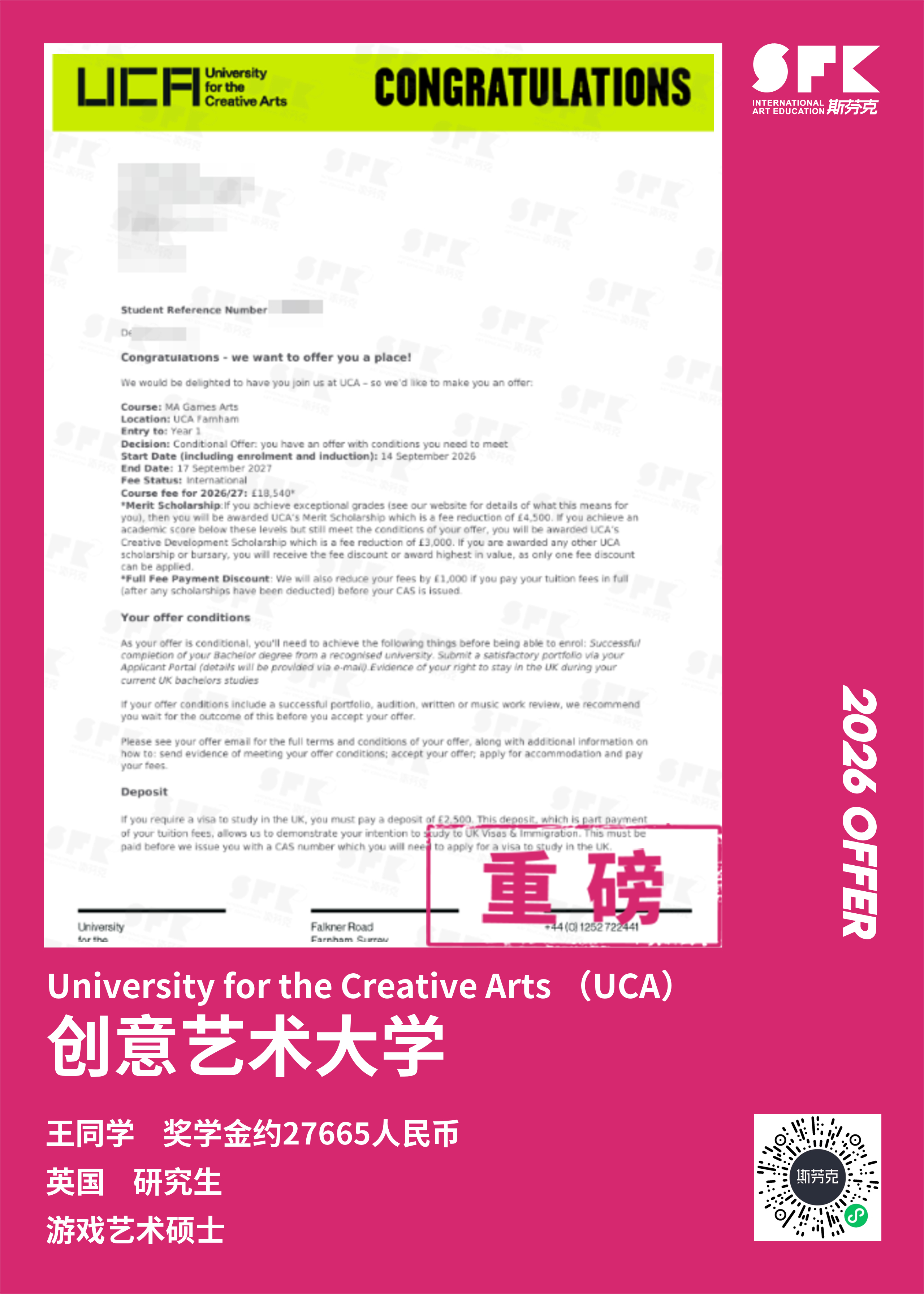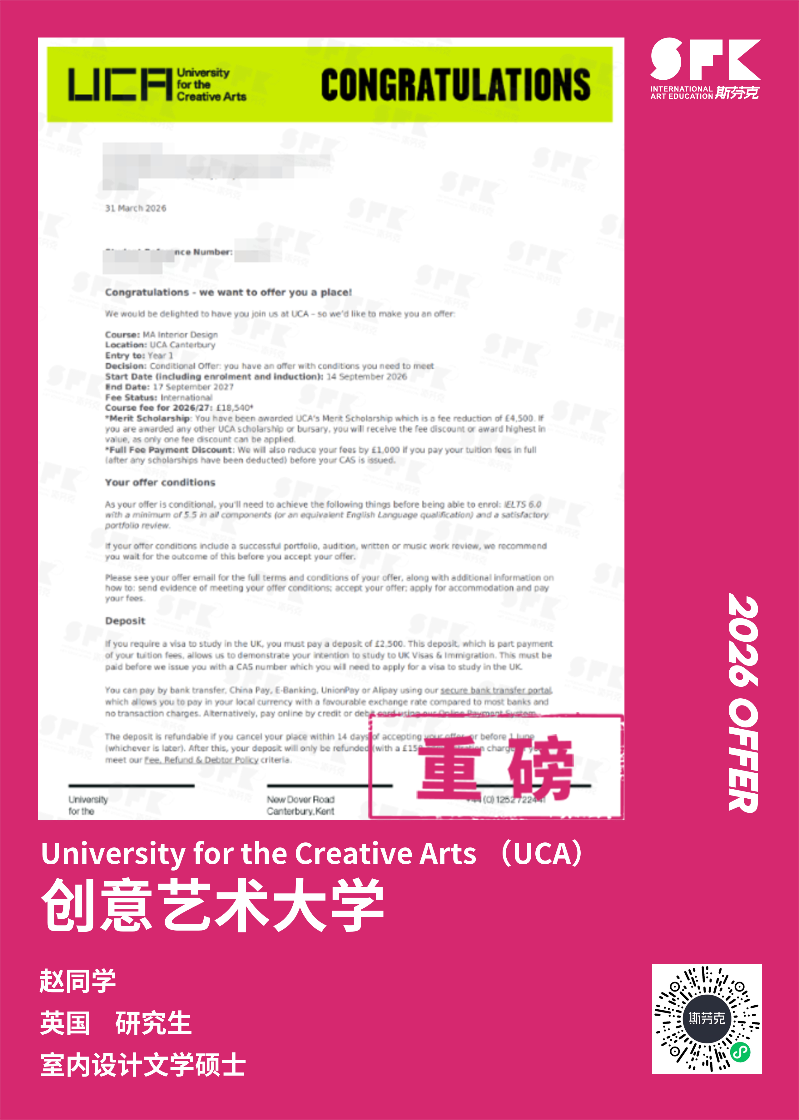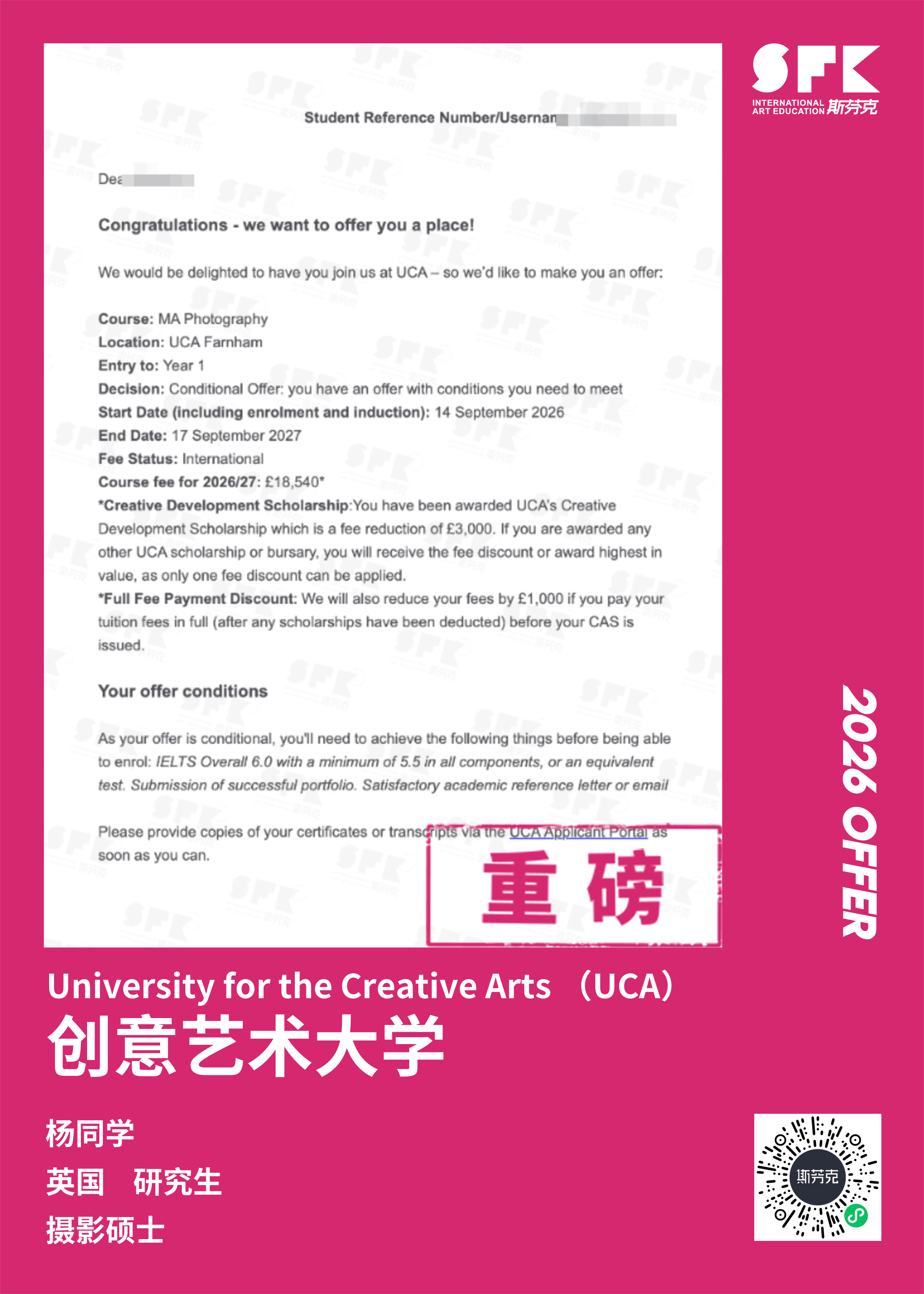 UCA 的就业率高达96.9%,是英国就业率最高的创意艺术类大学,一直将就业作为教学的目的。从课程设置,师资配置,业内资源到专门的就业指导中心提供专业的就业指导,UCA 给予学生全方位的就业支持。