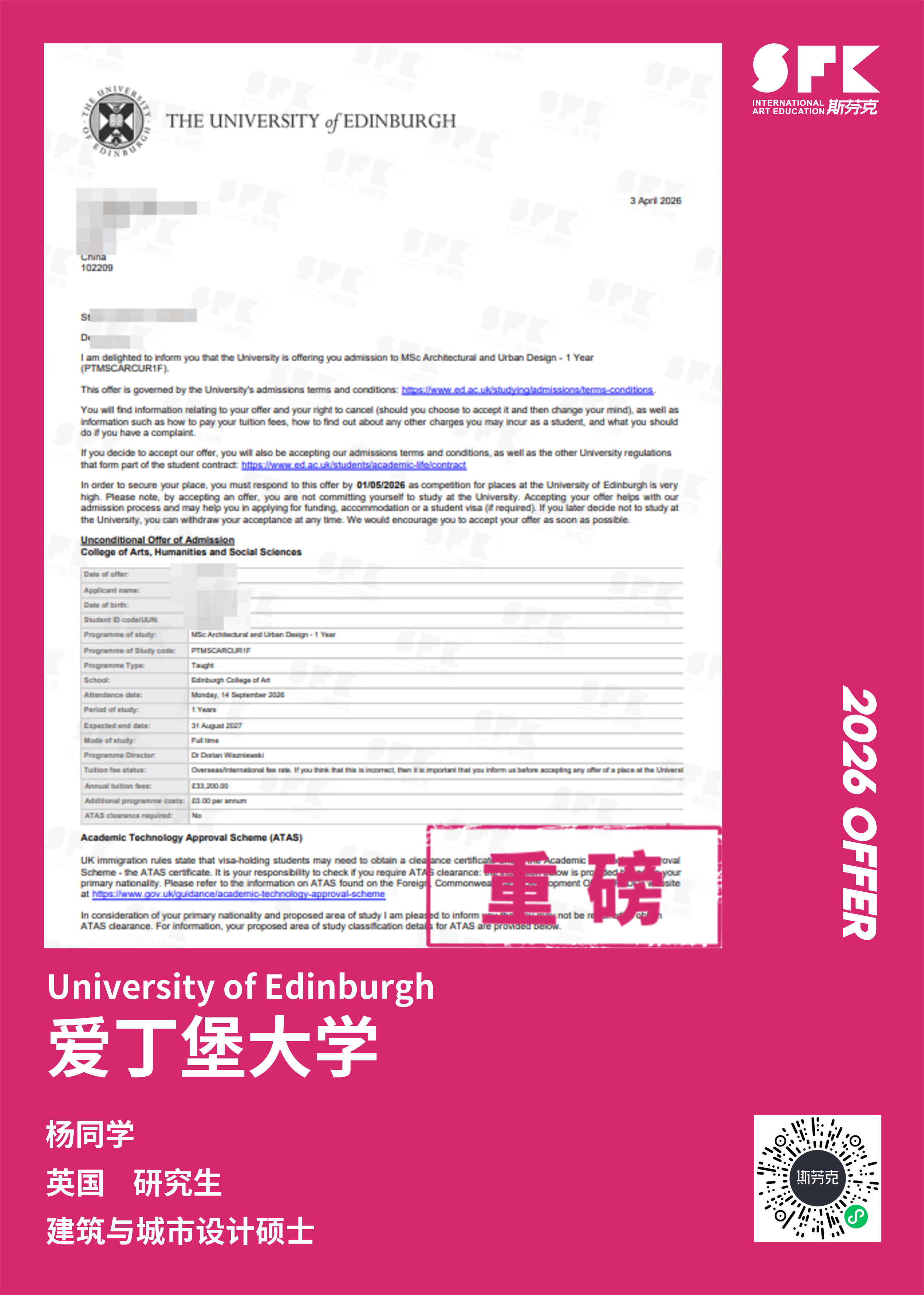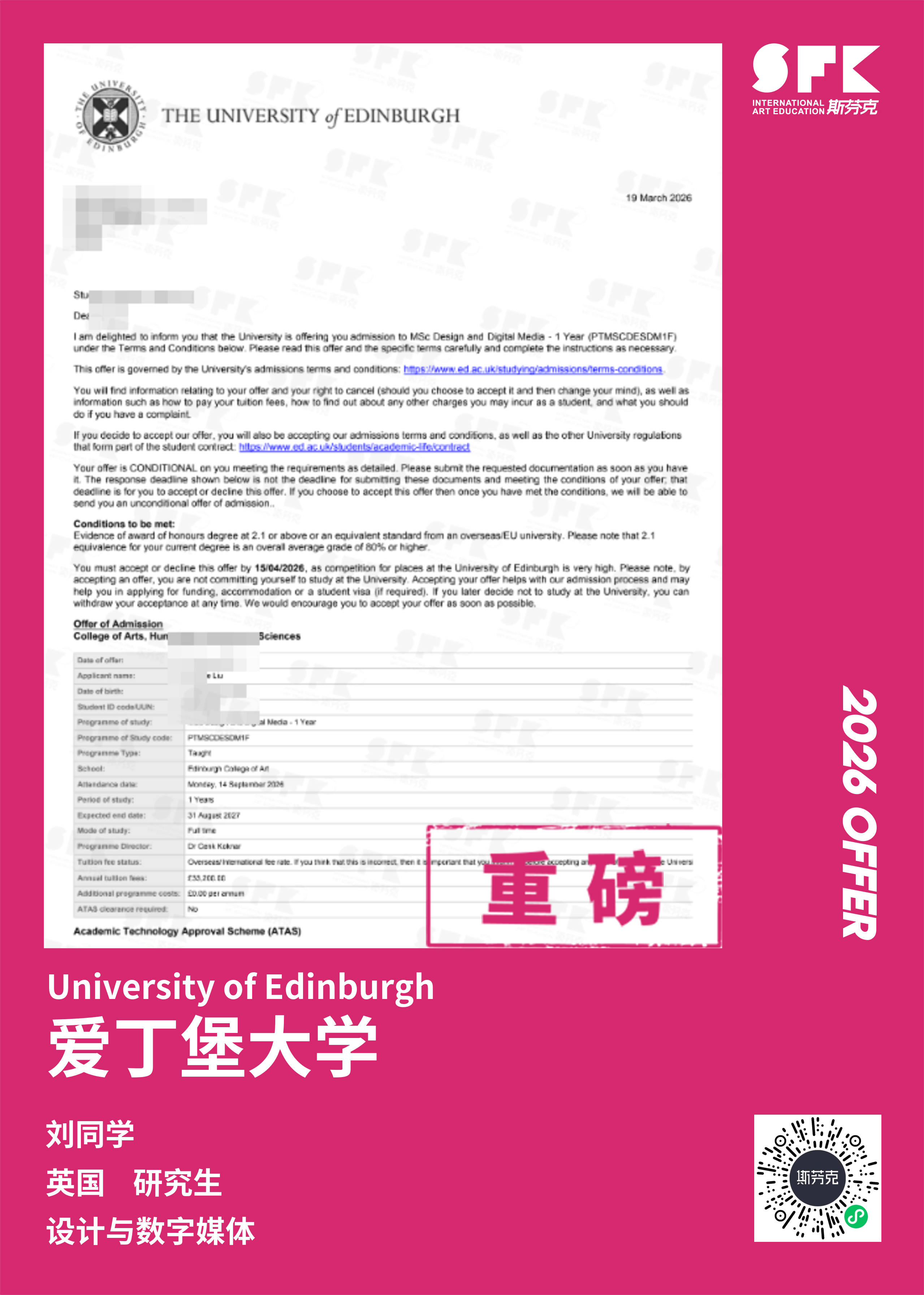 其实院校背景没有那么强的双非院校同学,仍然可以凭借优秀作品集、文书等申请材料,也能成功申请!