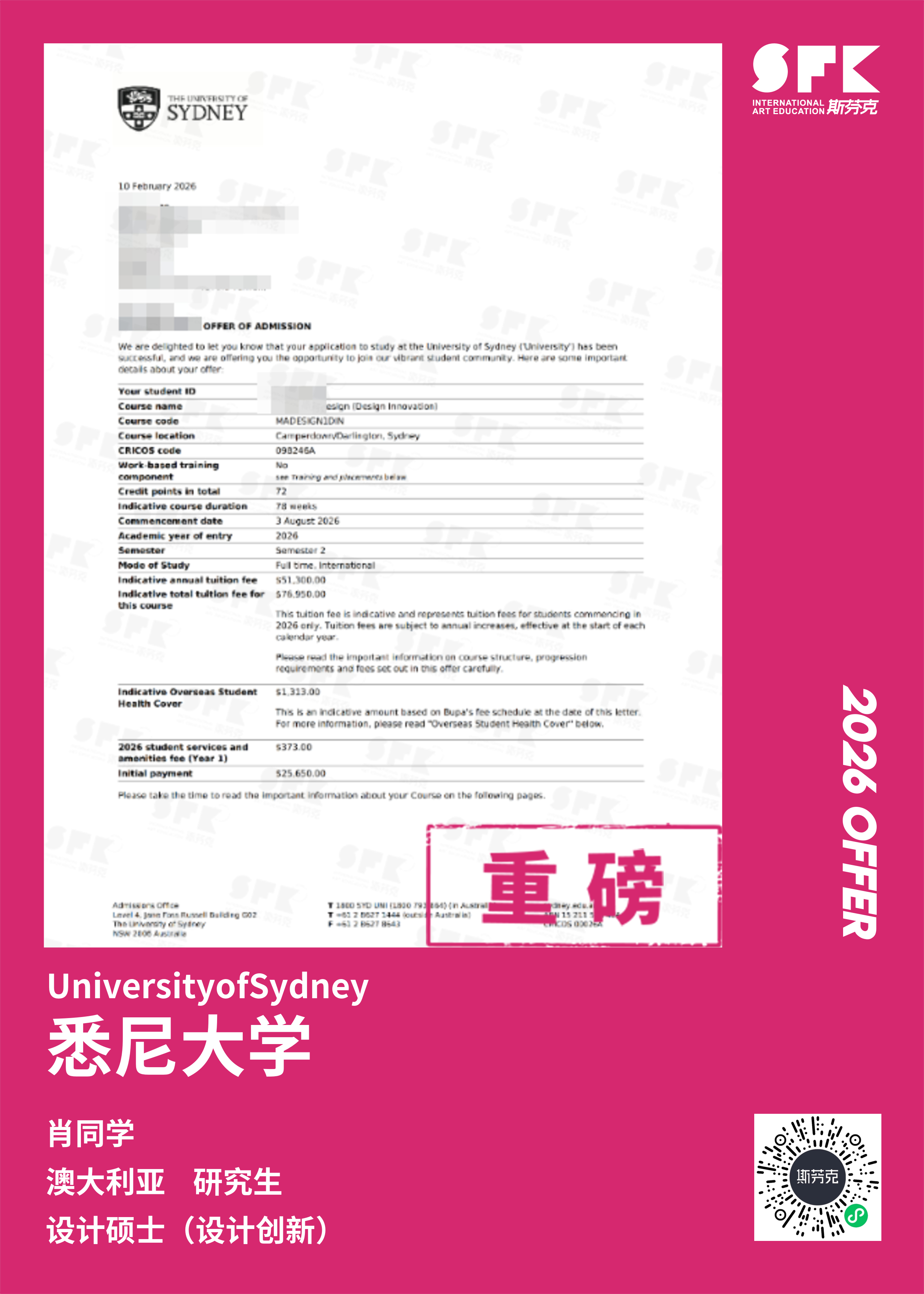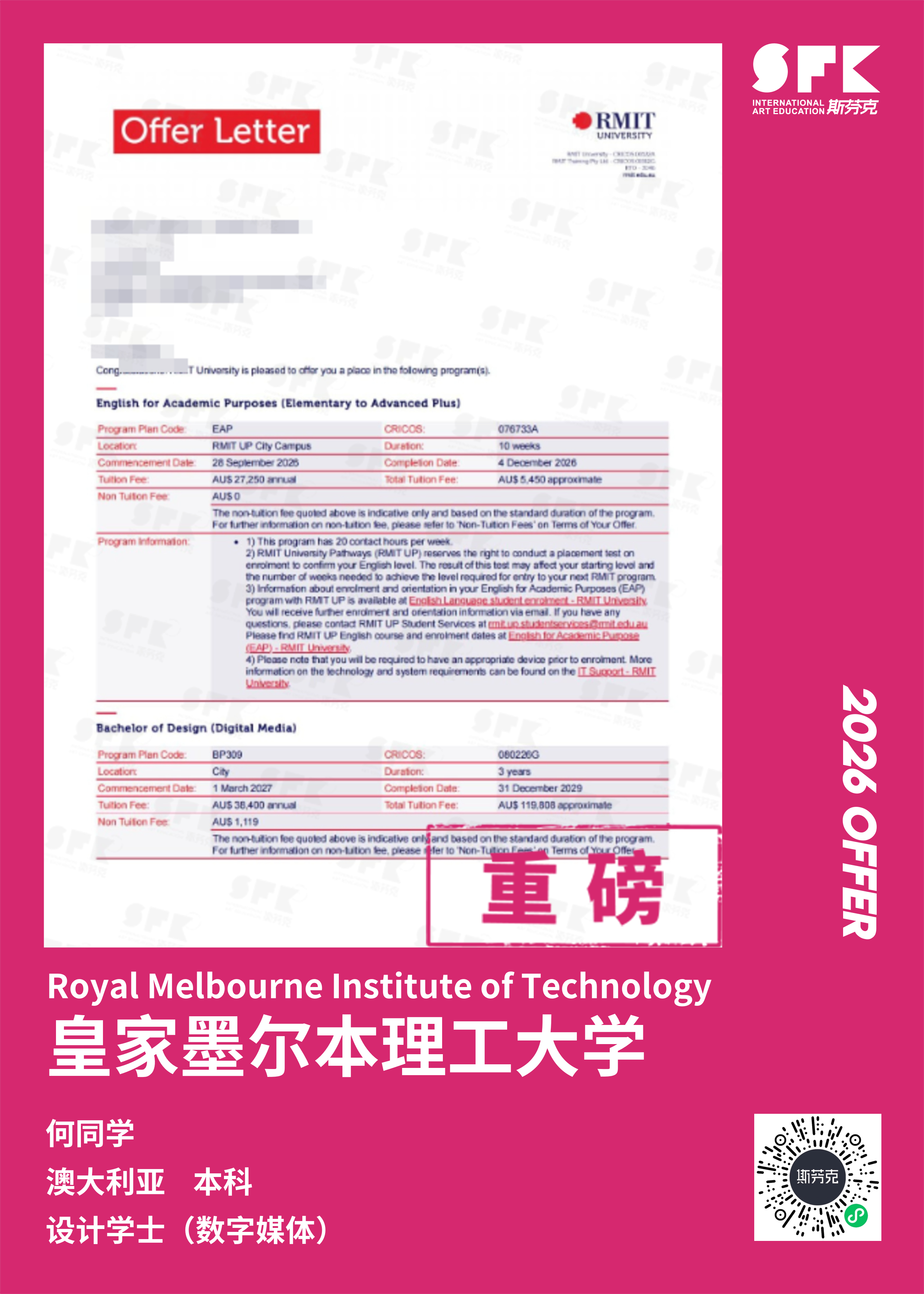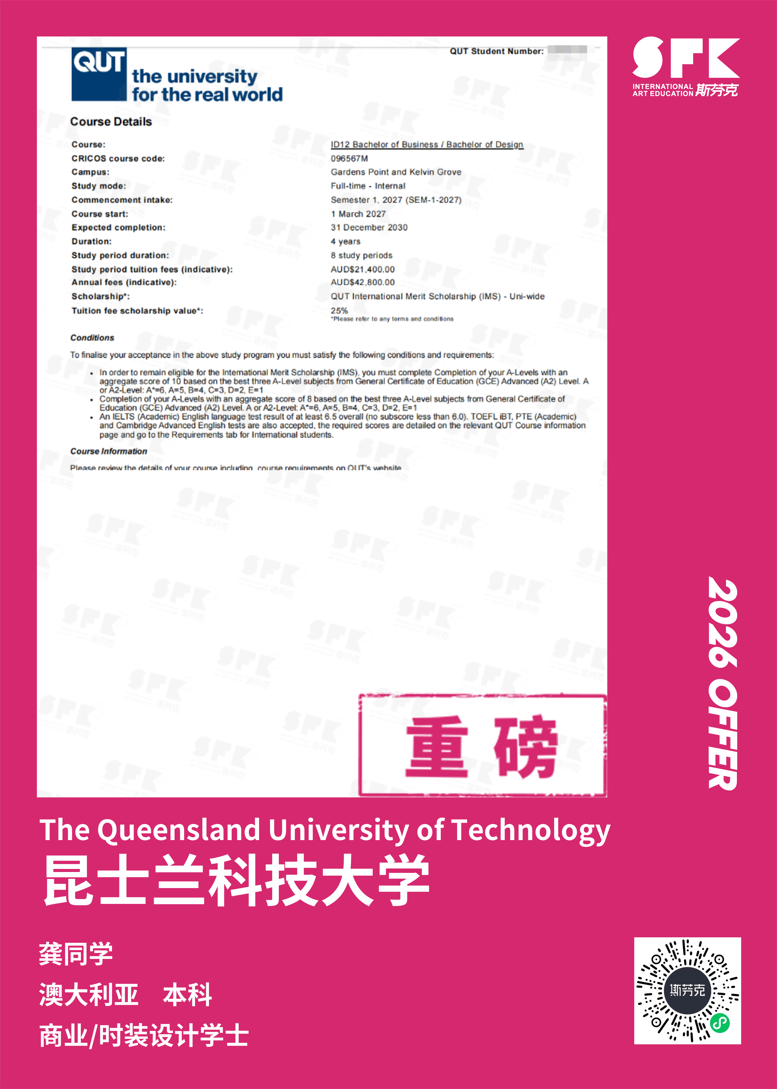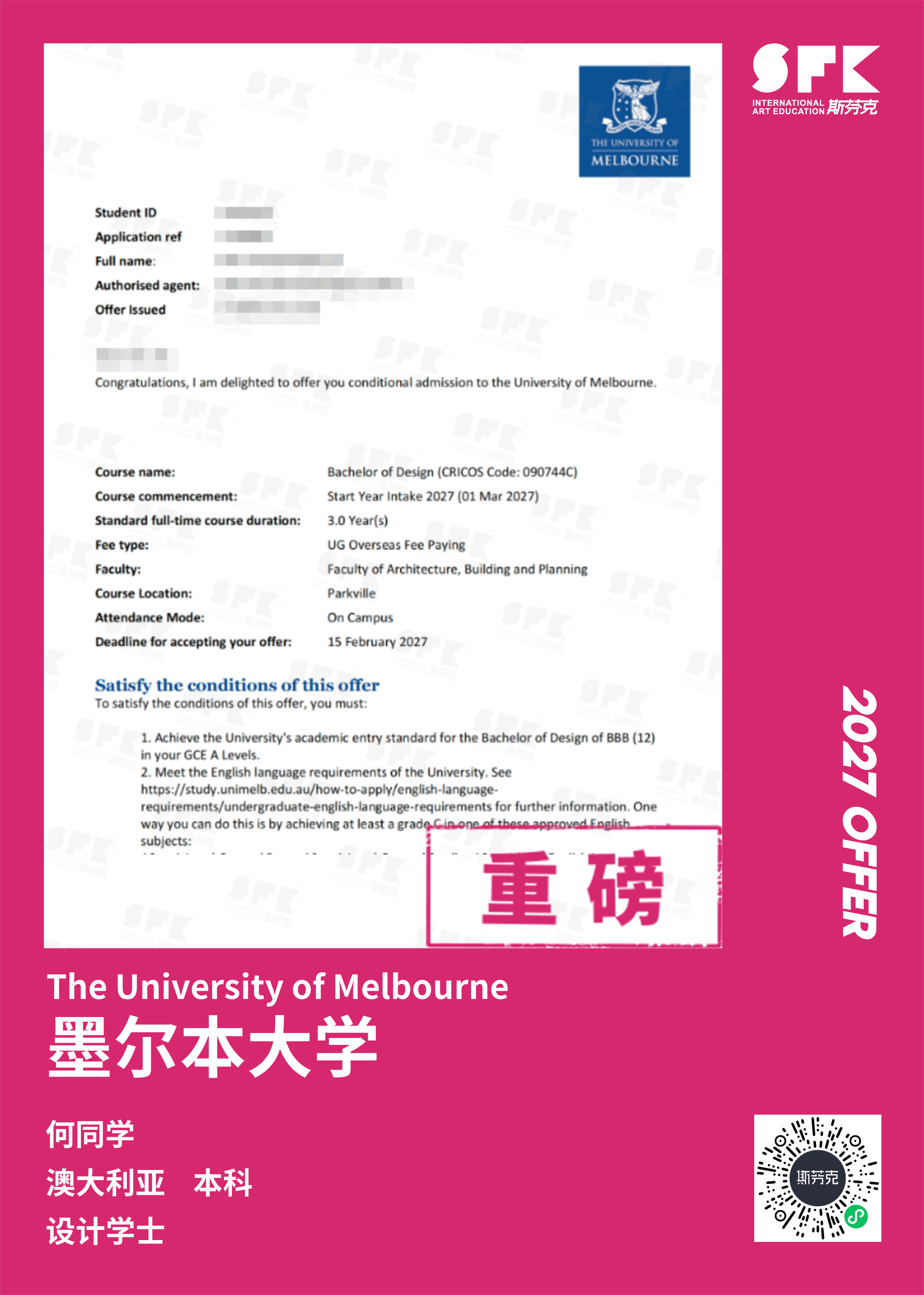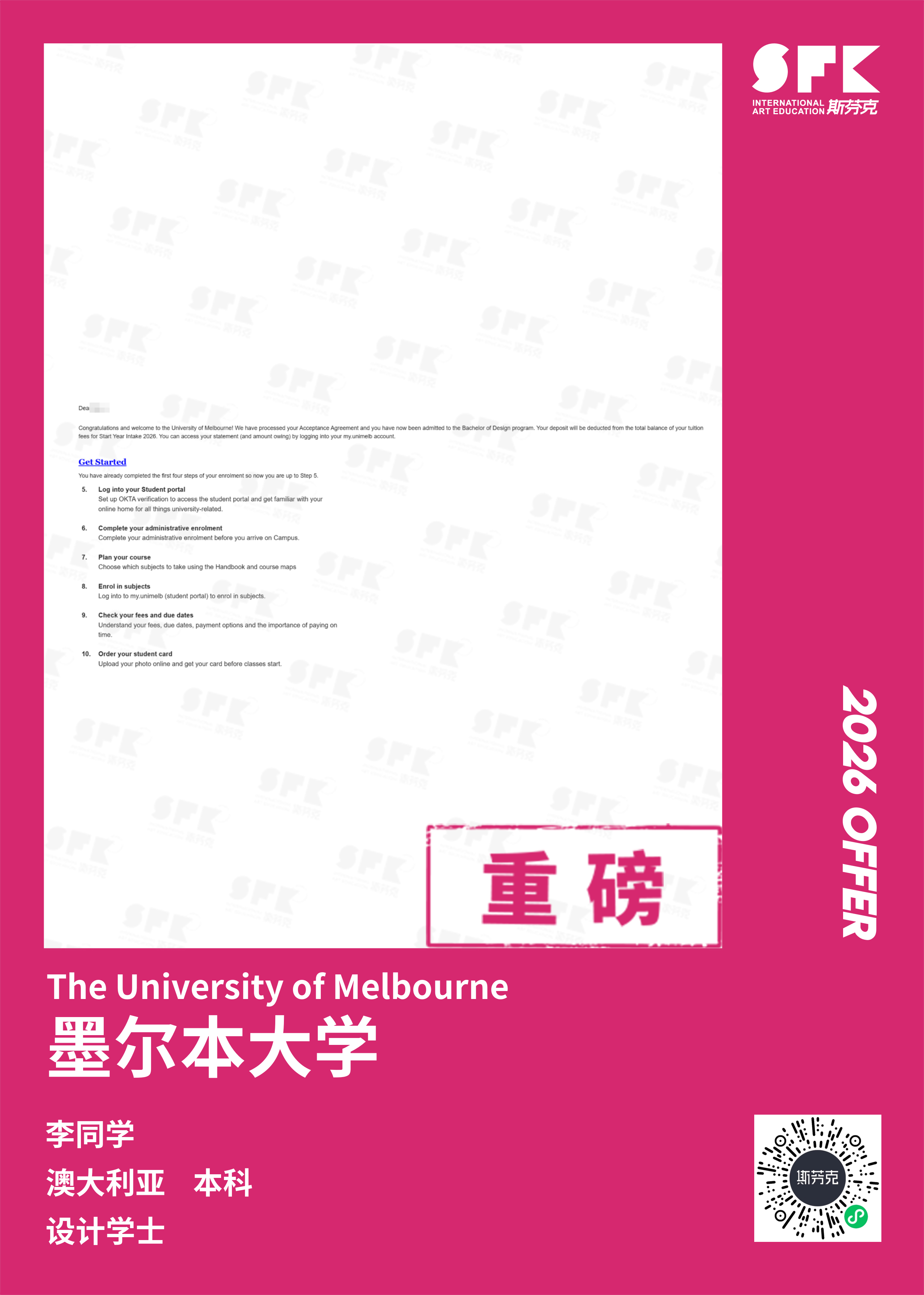以录取“澳洲八大”院校为目标,通过专业课程培训,帮助学生有针对性的完成一套作品集,产出国际课程成绩/GPA、文书申请等服务。帮助学员申请梦校。